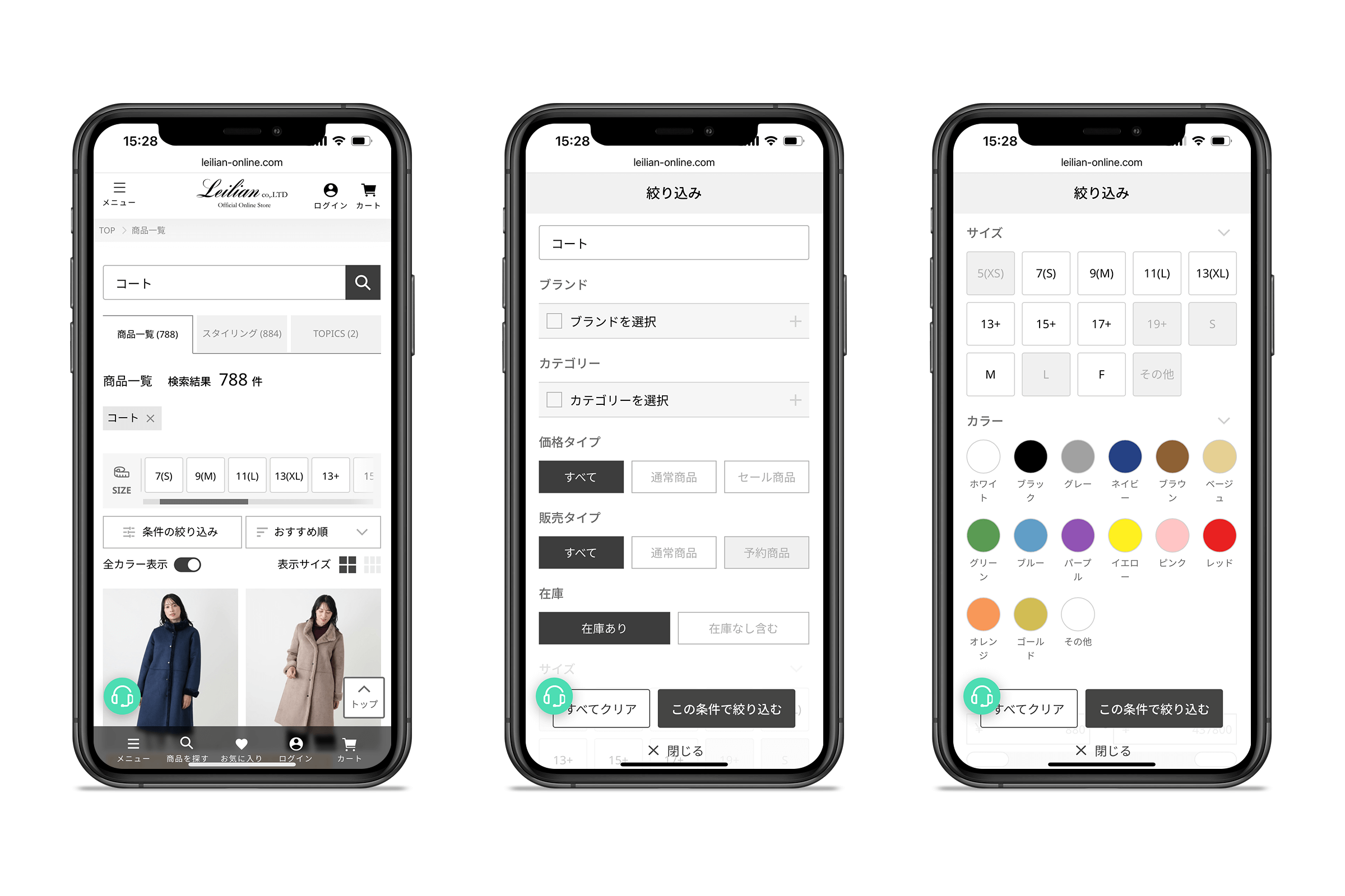 レリアン公式オンラインストア:キーワード検索結果・絞り込み(ファセット)