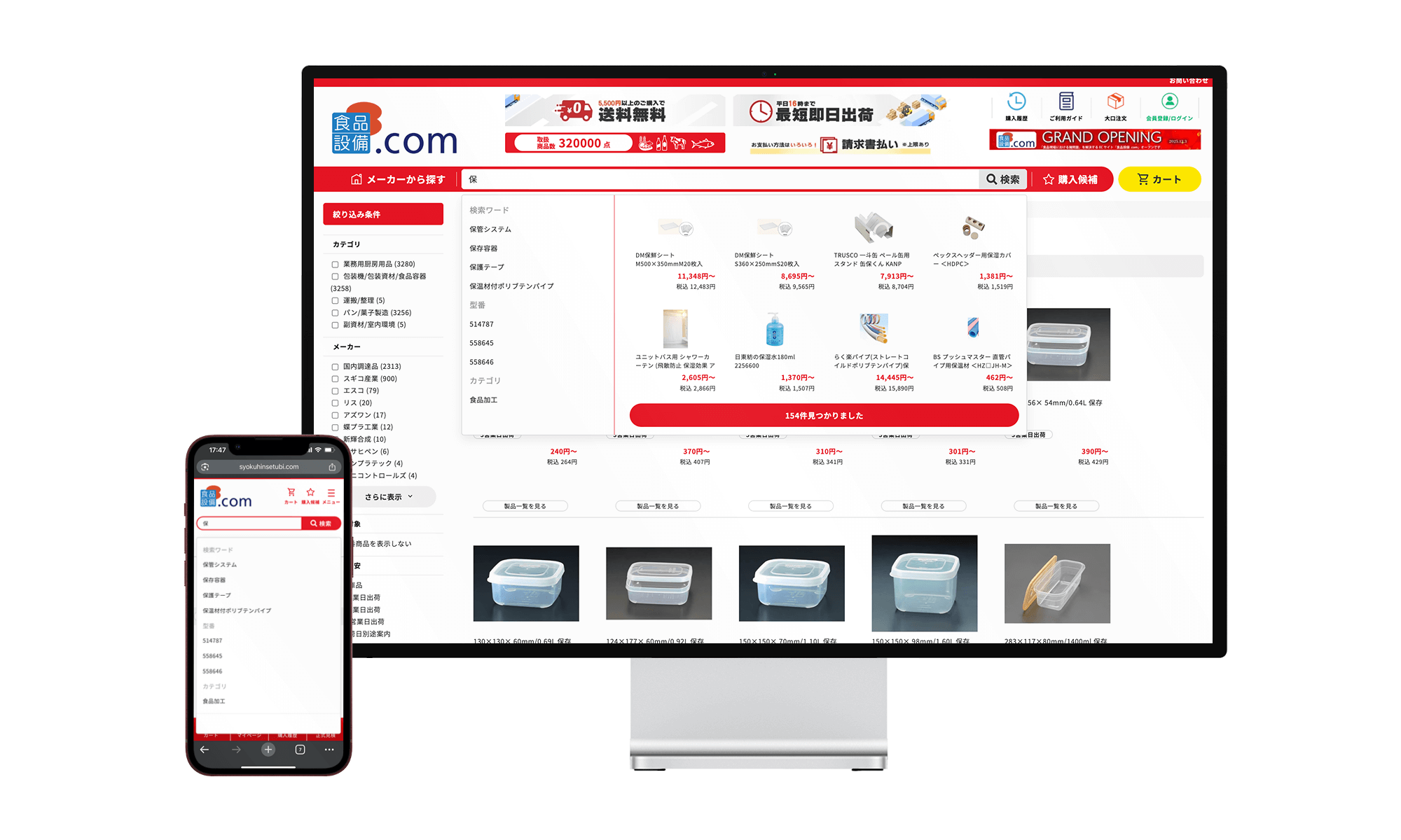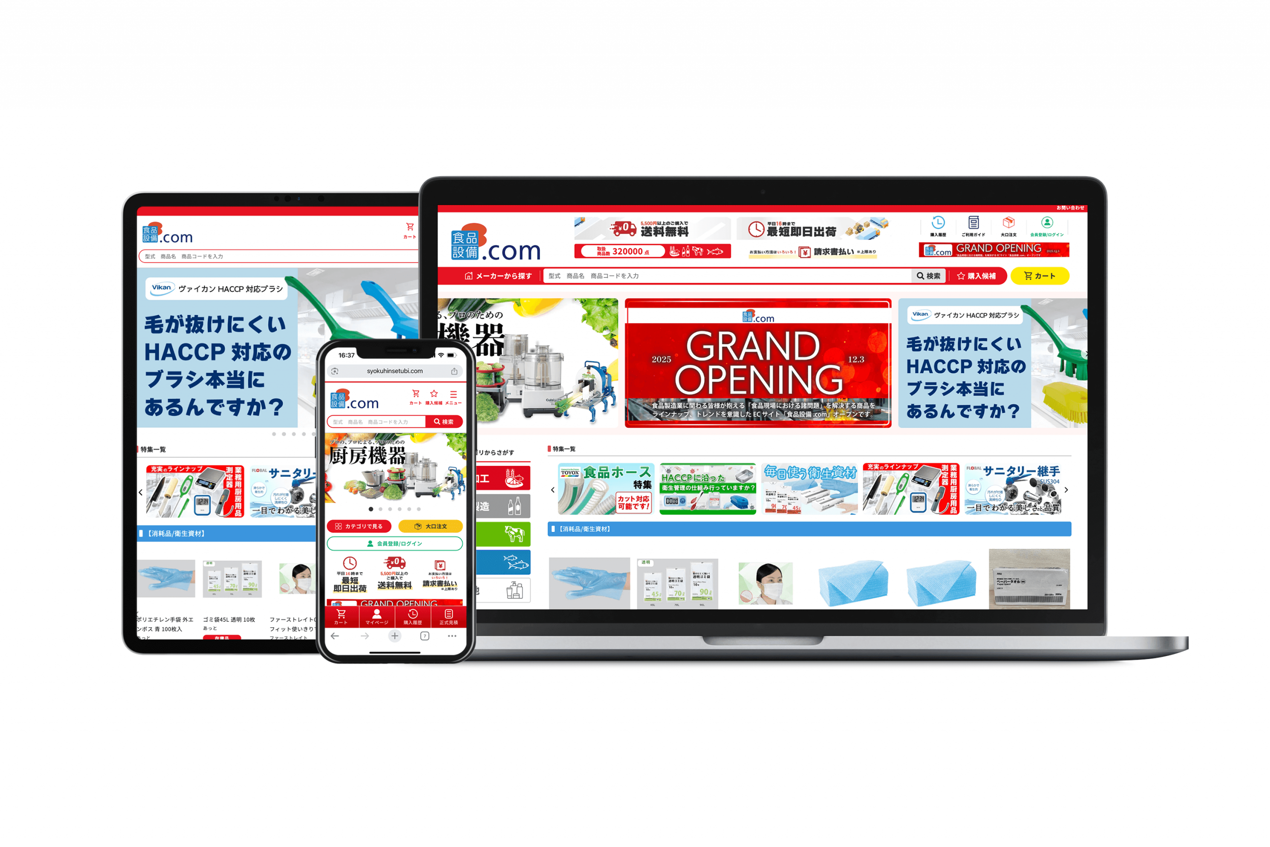 このたび、2025年12月3日に新たにオープンした食品製造業特化型のECサイト『食品設備.com』においても、その確かな実績を背景に「ユニサーチBtoB」の導入が決定いたしました。
