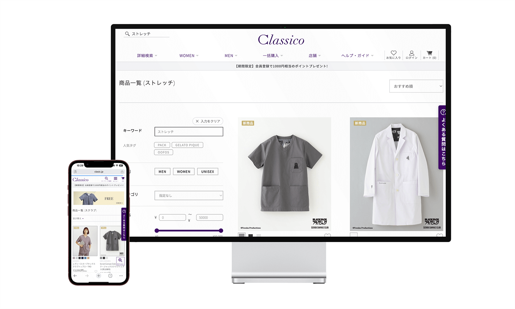 ECサイトの売上向上と顧客体験の最適化を支援する、次世代AIサイト内検索エンジン「ユニサーチ」を開発・運用するユニバーサルナレッジ株式会社(本社:東京都渋谷区)は、2026年1月14日よりクラシコ株式会社(本社:東京都港区)が運営する、白衣・スクラブなどのメディカルアパレルの企画・開発・販売を行う『Classico(クラシコ)オンラインストア』に、当社のサイト内検索「ユニサーチ」が導入されたことをお知らせいたします。