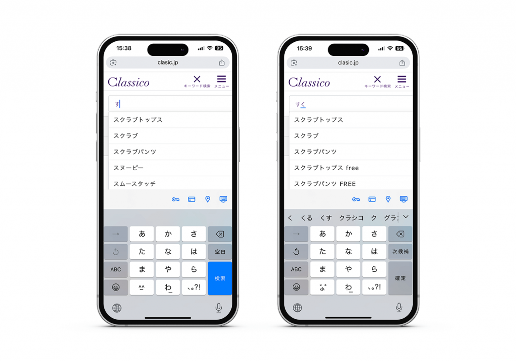 クラシコ公式オンラインストア:キーワード検索 表記ゆれ機能