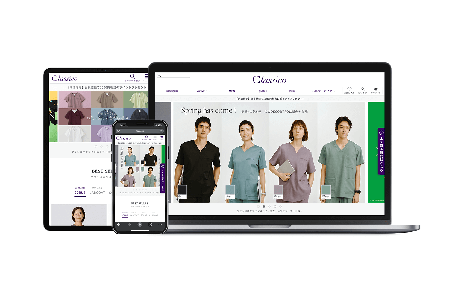 クラシコ株式会社は、「医療現場に、感性を。」をミッションに、これまでの「白衣=単なる作業着」という概念を覆し、ファッション性と機能性を兼ね備えたメディカルアパレルを展開する企業です。