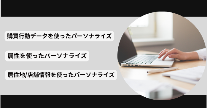 地域や店舗の情報を活かすことで、ユーザーに「近隣で手に入る商品」を優先的に知らせることができ、購買意欲を後押しします。特に食品や日用品など地域ごとに需要が異なる商品カテゴリでは、居住地ベースのパーソナライズが効果的です。