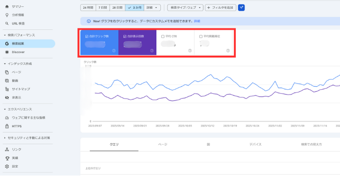 たとえば、Googleサーチコンソールでは、自分のサイトがどのキーワードでどの程度の順位・表示回数・クリック数を獲得しているのかを、パーソナライズの影響を排除した状態で確認できます。